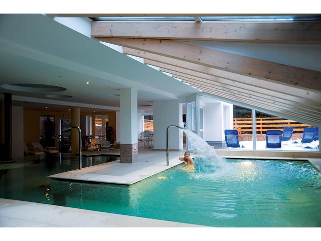 bazén 104 m² atypického tvaru s protiproudem, umělým vodopádem a lehátky, dětský bazének 10 m² s lehátky, vířivka až pro 9 osob, aromatická sauna, pára, termárium / wasserparadise, 4x multifunkční sprcha, horizontální solárium*, relaxační koutek s lehátky, kneippův chodník, masáže*, kosmetické služby*, posilovna