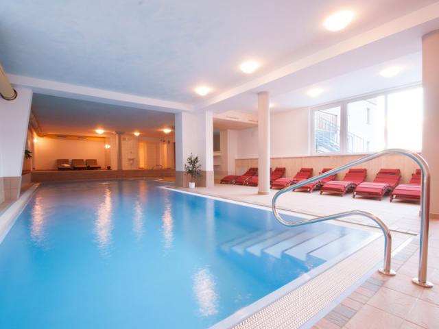 příjemná wellness zóna s krytým bazénem (cca 55 m2) s protiproudem, masážními tryskami, dětská/rodinná sauna, parní lázeň. Pouze pro dospělé: infrakabiny, finská sauna, biosauna, turecká parní lázeň, Kneippovy bazénky, zážitkové sprchy, ledová jeskyně, odpočívárny. Za poplatek: kosmetické procedury a masáže.
